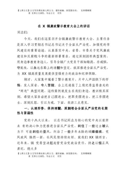 / 【七哥公文】2025年:在X镇廉政警示教育大会上的讲话+更多免费公文+VX:QiGeGongWen2024