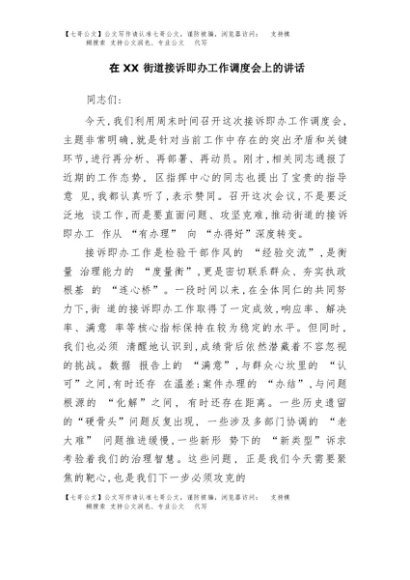 / 【七哥公文】2025年:在XX街道接诉即办工作调度会上的讲话+更多免费公文+VX:QiGeGongWen2024