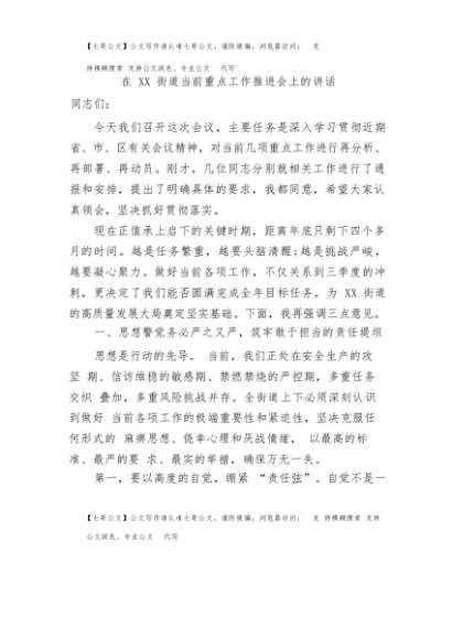 / 【七哥公文】2025年:在XX街道当前重点工作推进会上的讲话+更多免费公文+VX:QiGeGongWen2024