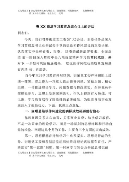 / 【七哥公文】2025年:在XX街道学习教育总结会议上的讲话+更多免费公文+VX:QiGeGongWen2024