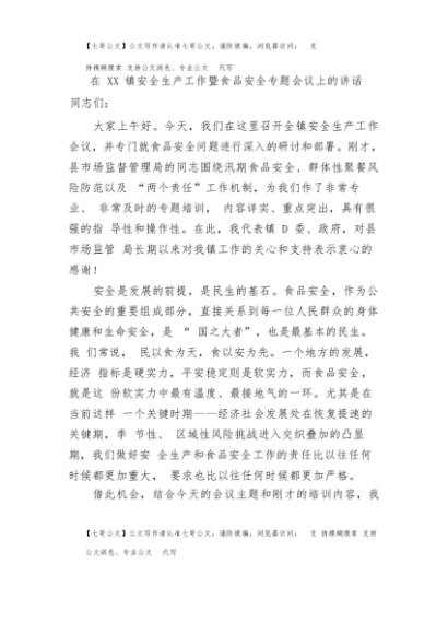 / 【七哥公文】2025年:在XX镇安全生产工作暨食品安全专题会议上的讲话+更多免费公文+VX:QiGeGongWen2024