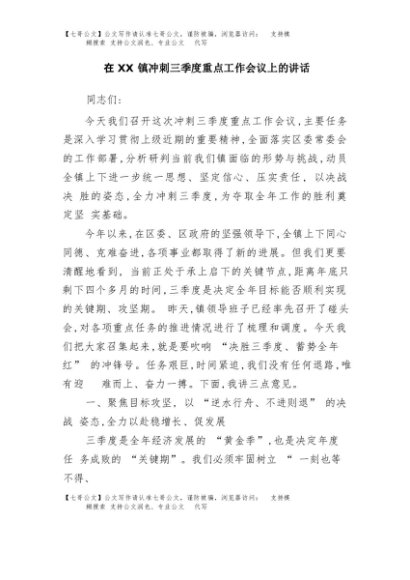/ 【七哥公文】2025年:在XX镇冲刺三季度重点工作会议上的讲话+更多免费公文+VX:QiGeGongWen2024