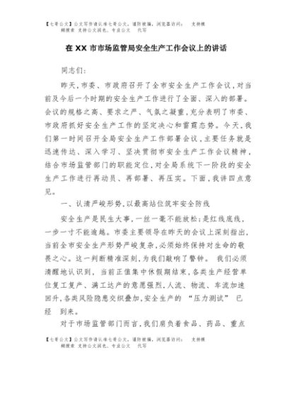 / 【七哥公文】2025年:在XX市市场监管局安全生产工作会议上的讲话+更多免费公文+VX:QiGeGongWen2024