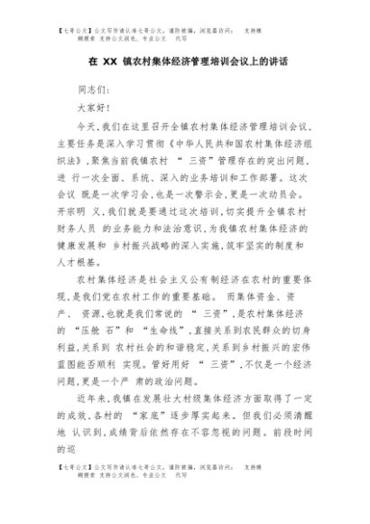 / 【七哥公文】2025年:在XX镇农村集体经济管理培训会议上的讲话+更多免费公文+VX:QiGeGongWen2024