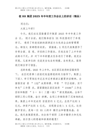 【七哥公文】2025年:在XX集团2025年半年度工作会议上的讲话(精品)+更多免费公文+VX:QiGeGongWen2024