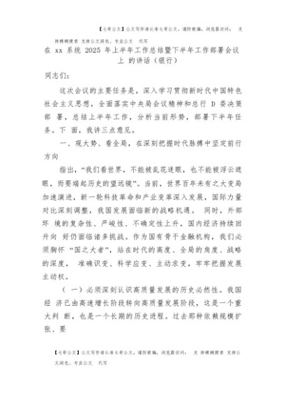 【七哥公文】2025年:在xx系统2025年上半年工作总结暨下半年工作部署会议上的讲话(银行)+更多免费公文+VX:QiGeGongWen2024
