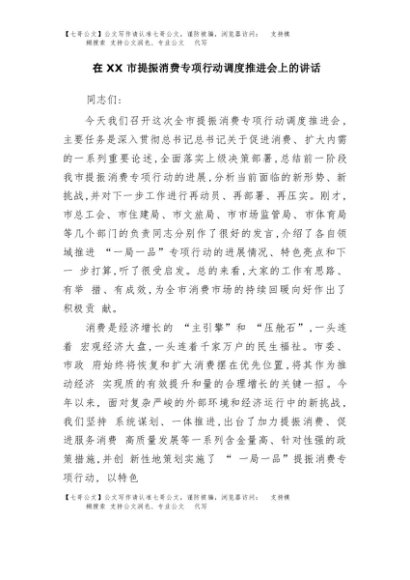 / 【七哥公文】2025年:在XX市提振消费专项行动调度推进会上的讲话+更多免费公文+VX:QiGeGongWen2024