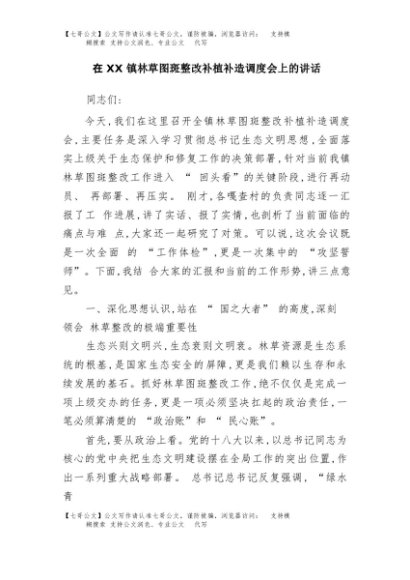 / 【七哥公文】2025年:在XX镇林草图斑整改补植补造调度会上的讲话+更多免费公文+VX:QiGeGongWen2024