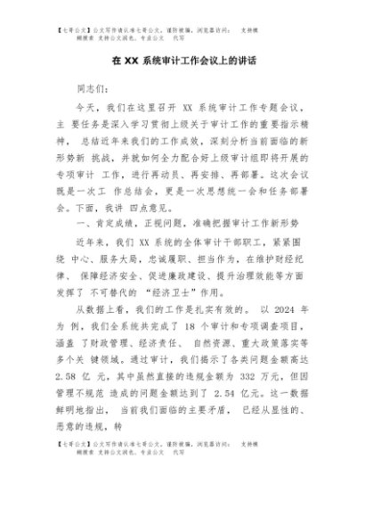 / 【七哥公文】2025年:在XX系统审计工作会议上的讲话+更多免费公文+VX:QiGeGongWen2024