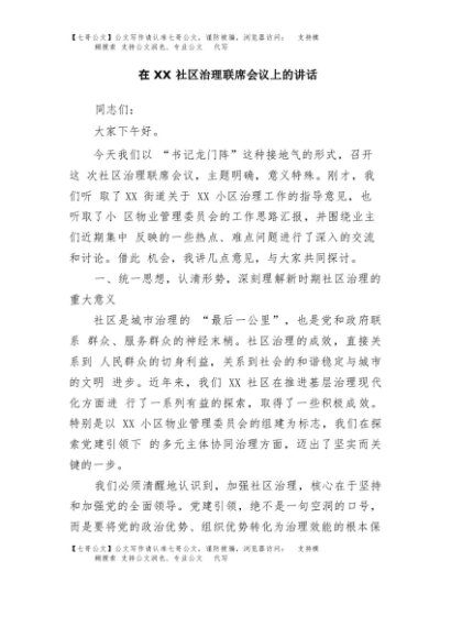 / 【七哥公文】2025年:在XX社区治理联席会议上的讲话+更多免费公文+VX:QiGeGongWen2024
