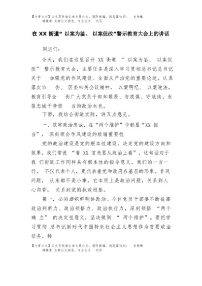 【七哥公文】2025年:在XX街道“以案为鉴、以案促改”警示教育大会上的讲话+更多免费公文+VX:QiGeGongWen2024