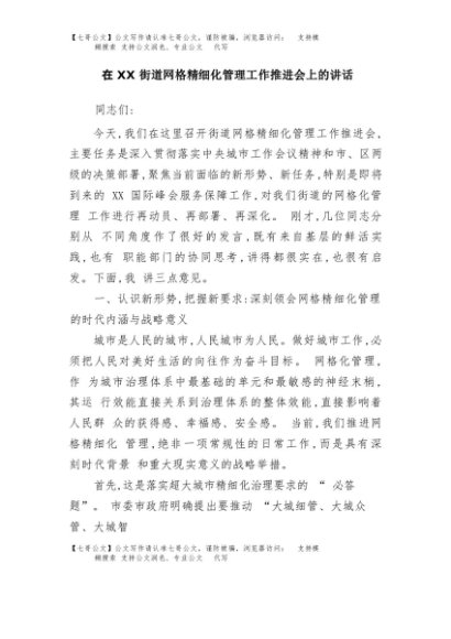 【七哥公文】2025年:在XX街道网格精细化管理工作推进会上的讲话+更多免费公文+VX:QiGeGongWen2024