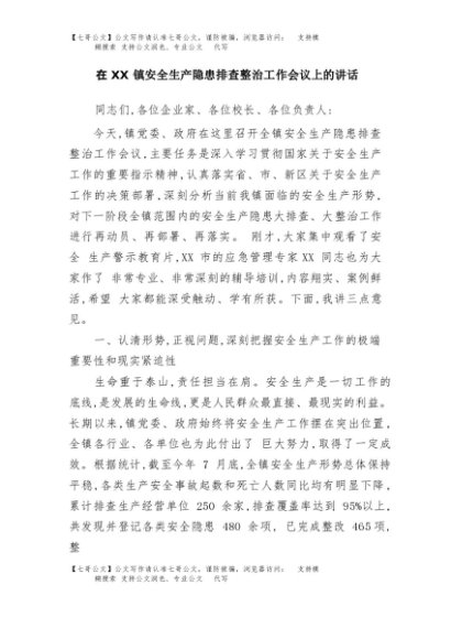 / 【七哥公文】2025年:在XX镇安全生产隐患排查整治工作会议上的讲话+更多免费公文+VX:QiGeGongWen2024