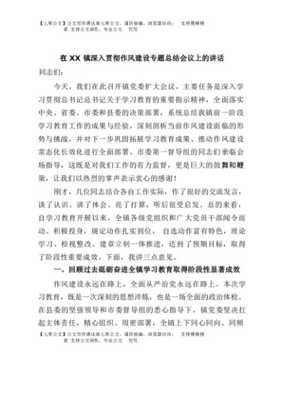 / 【七哥公文】2025年:在XX镇深入贯彻作风建设专题总结会议上的讲话+更多免费公文+VX:QiGeGongWen2024