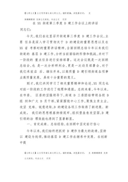 / 【七哥公文】2025年:在XX街道第三季度党建工作会议上的讲话+更多免费公文+VX:QiGeGongWen2024