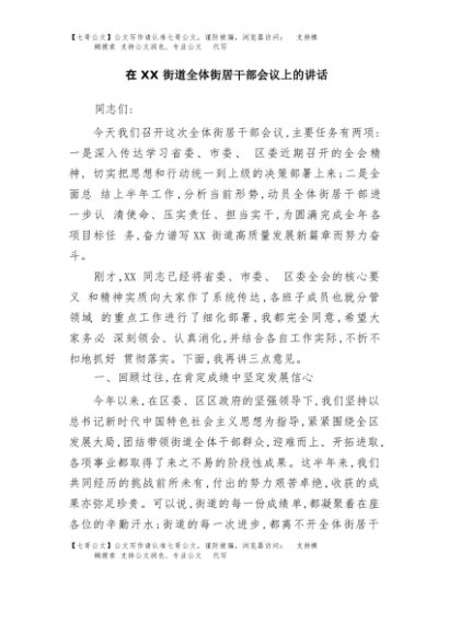 / 【七哥公文】2025年:在XX街道全体街居干部会议上的讲话+更多免费公文+VX:QiGeGongWen2024