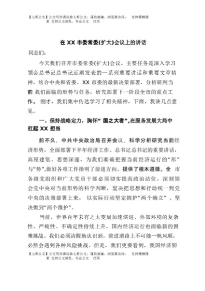 / 【七哥公文】2025年:在XX市委常委(扩大)会议上的讲话+更多免费公文+VX:QiGeGongWen2024
