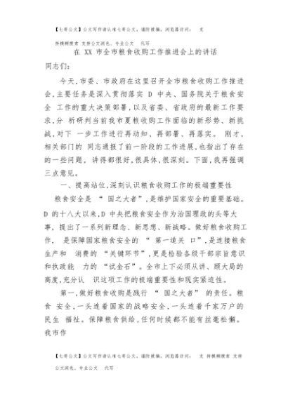 / 【七哥公文】2025年:在XX市全市粮食收购工作推进会上的讲话+更多免费公文+VX:QiGeGongWen2024