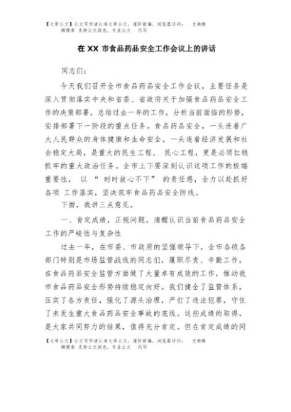 / 【七哥公文】2025年:在XX市食品药品安全工作会议上的讲话+更多免费公文+VX:QiGeGongWen2024