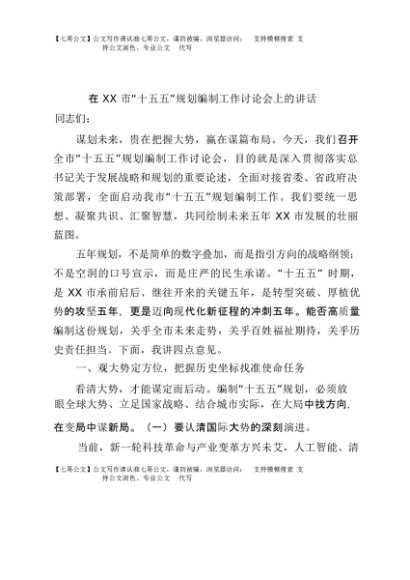/ 【七哥公文】2025年:在XX市“十五五”规划编制工作讨论会上的讲话+更多免费公文+VX:QiGeGongWen2024