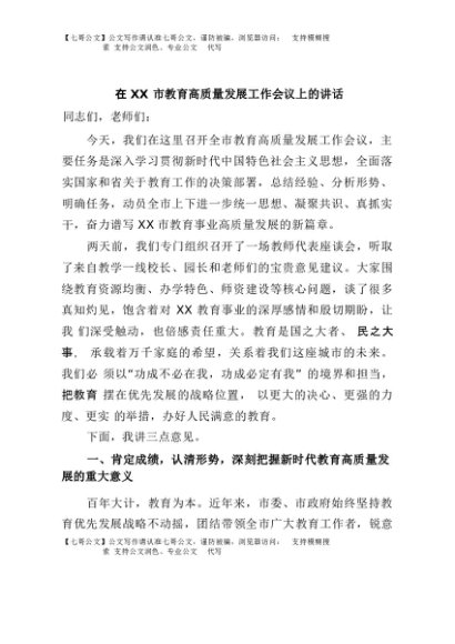 / 【七哥公文】2025年:在XX市教育高质量发展工作会议上的讲话+更多免费公文+VX:QiGeGongWen2024