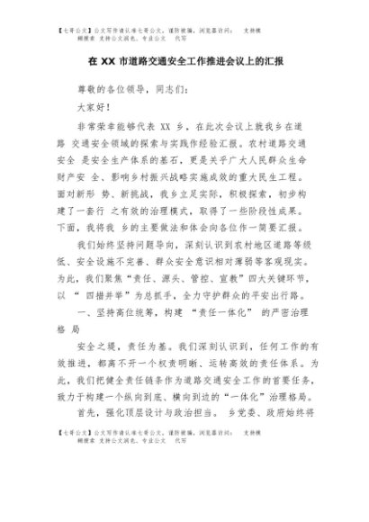 / 【七哥公文】2025年:在XX市道路交通安全工作推进会议上的汇报+更多免费公文+VX:QiGeGongWen2024