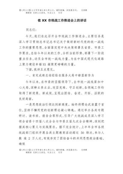 / 【七哥公文】2025年:在XX市统战工作推进会上的讲话+更多免费公文+VX:QiGeGongWen2024