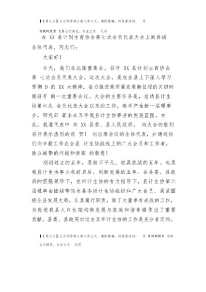 / 【七哥公文】2025年:在XX县计划生育协会第七次会员代表大会上的讲话+更多免费公文+VX:QiGeGongWen2024