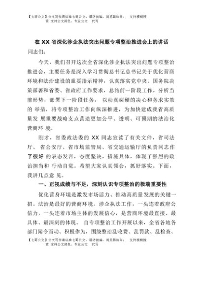 【七哥公文】2025年:在XX省深化涉企执法突出问题专项整治推进会上的讲话+更多免费公文+VX:QiGeGongWen2024