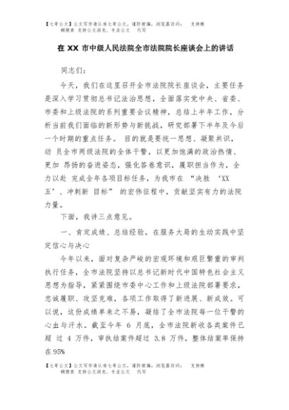 / 【七哥公文】2025年:在XX市中级人民法院全市法院院长座谈会上的讲话+更多免费公文+VX:QiGeGongWen2024