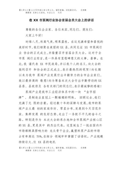 / 【七哥公文】2025年:在XX市泵阀行业协会首届会员大会上的讲话+更多免费公文+VX:QiGeGongWen2024