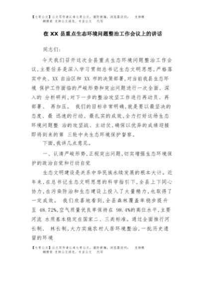 / 【七哥公文】2025年:在XX县重点生态环境问题整治工作会议上的讲话+更多免费公文+VX:QiGeGongWen2024