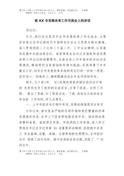 / 【七哥公文】2025年:在XX市发展改革工作交流会上的讲话+更多免费公文+VX:QiGeGongWen2024