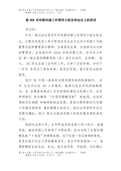 / 【七哥公文】2025年:在XX市双拥共建工作领导小组全体会议上的讲话+更多免费公文+VX:QiGeGongWen2024