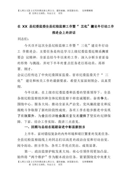 【七哥公文】2025年:在XX县纪委监委全县纪检监察工作暨“三化”建设年行动工作推进会上的讲话+更多免费公文+VX:QiGeGongWen2024