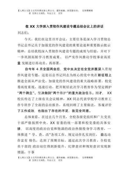 / 【七哥公文】2025年:在XX大学深入贯彻作风建设专题总结会议上的讲话+更多免费公文+VX:QiGeGongWen2024