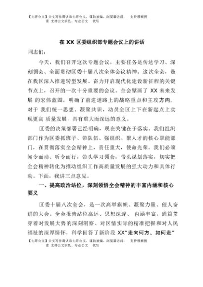 / 【七哥公文】2025年:在XX区委组织部专题会议上的讲话+更多免费公文+VX:QiGeGongWen2024