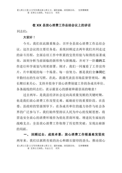 / 【七哥公文】2025年:在XX县放心消费工作总结会议上的讲话+更多免费公文+VX:QiGeGongWen2024