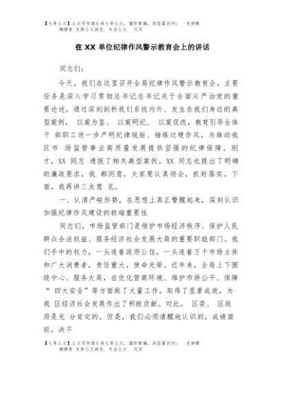 / 【七哥公文】2025年:在XX单位纪律作风警示教育会上的讲话+更多免费公文+VX:QiGeGongWen2024