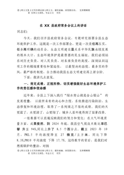 / 【七哥公文】2025年:在XX县政府常务会议上的讲话+更多免费公文+VX:QiGeGongWen2024