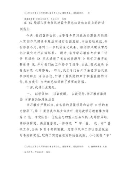 【七哥公文】2025年:在XX局深入贯彻作风建设专题总结评估会议上的讲话+更多免费公文+VX:QiGeGongWen2024