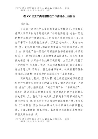 / 【七哥公文】2025年:在XX区党工委巡察整改工作推进会上的讲话+更多免费公文+VX:QiGeGongWen2024