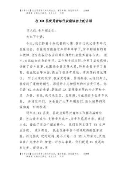 / 【七哥公文】2025年:在XX县优秀青年代表座谈会上的讲话+更多免费公文+VX:QiGeGongWen2024