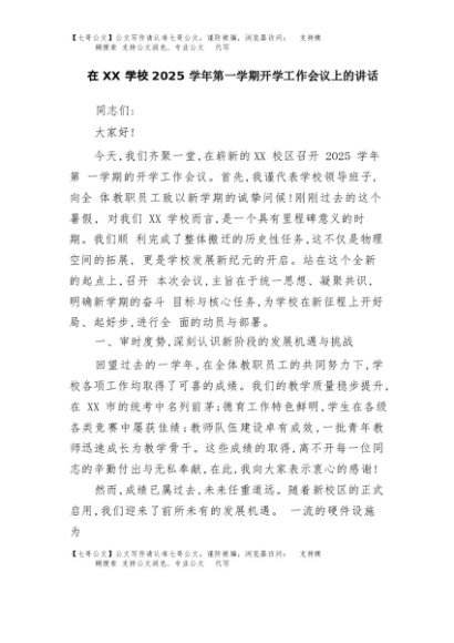 【七哥公文】2025年:在XX学校2025学年第一学期开学工作会议上的讲话+更多免费公文+VX:QiGeGongWen2024