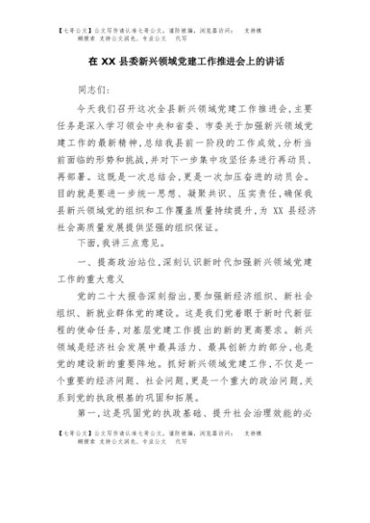 / 【七哥公文】2025年:在XX县委新兴领域党建工作推进会上的讲话+更多免费公文+VX:QiGeGongWen2024