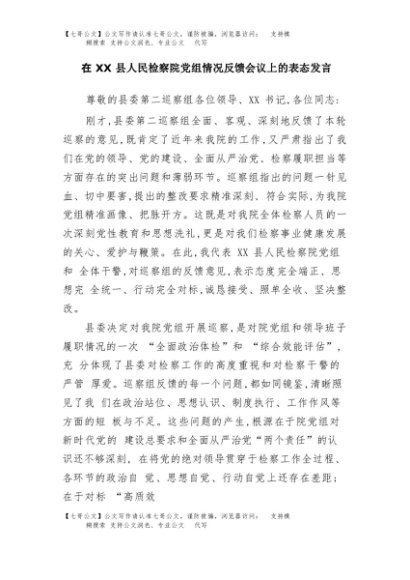 【七哥公文】2025年:在XX县人民检察院党组情况反馈会议上的表态发言+更多免费公文+VX:QiGeGongWen2024