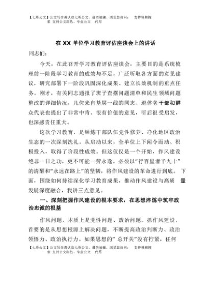 / 【七哥公文】2025年:在XX单位学习教育评估座谈会上的讲话+更多免费公文+VX:QiGeGongWen2024