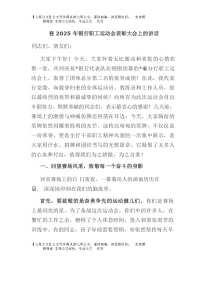 / 【七哥公文】2025年:在2025年银行职工运动会表彰大会上的讲话+更多免费公文+VX:QiGeGongWen2024