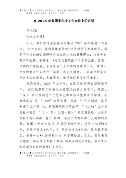 / 【七哥公文】2025年:在2025年集团半年度工作会议上的讲话+更多免费公文+VX:QiGeGongWen2024