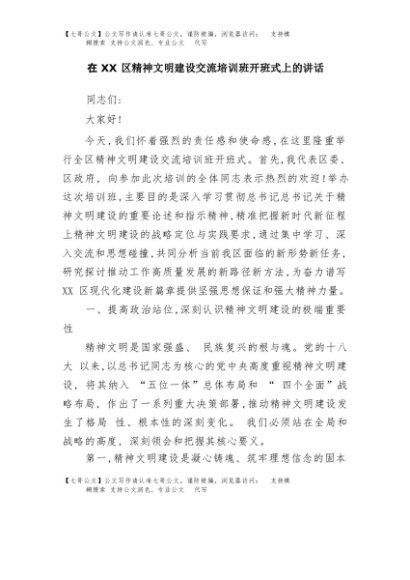 / 【七哥公文】2025年:在XX区精神文明建设交流培训班开班式上的讲话+更多免费公文+VX:QiGeGongWen2024